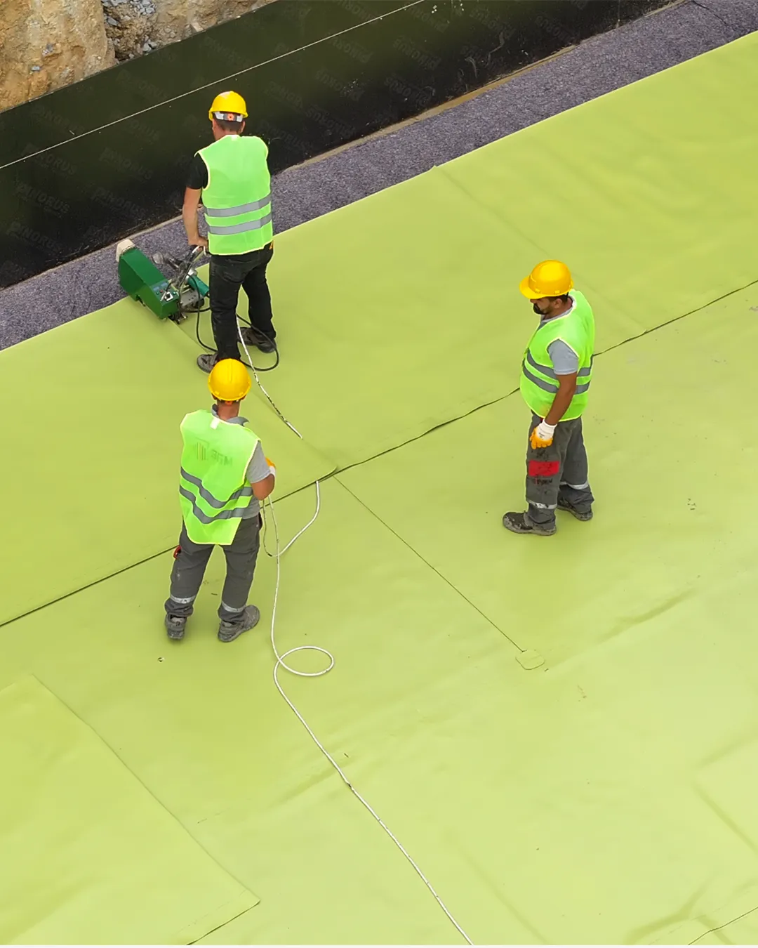 1.5 mm sinyal tabakalı Technoplan PVC Membran, Geotekstil keçe, 5 cm XPS Isı Yalıtım Levhası
